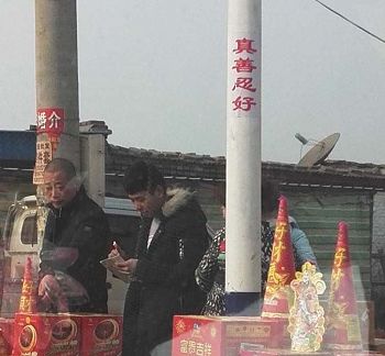• 新年期间石家庄市区张贴的真相展板及粘贴