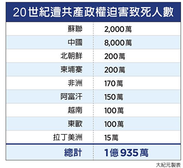 中共告诉我们,共产主义是“人间天堂”。它不告诉我们的是,世界各国的共产主义政权在和平时期造成一亿多人口非正常死亡。