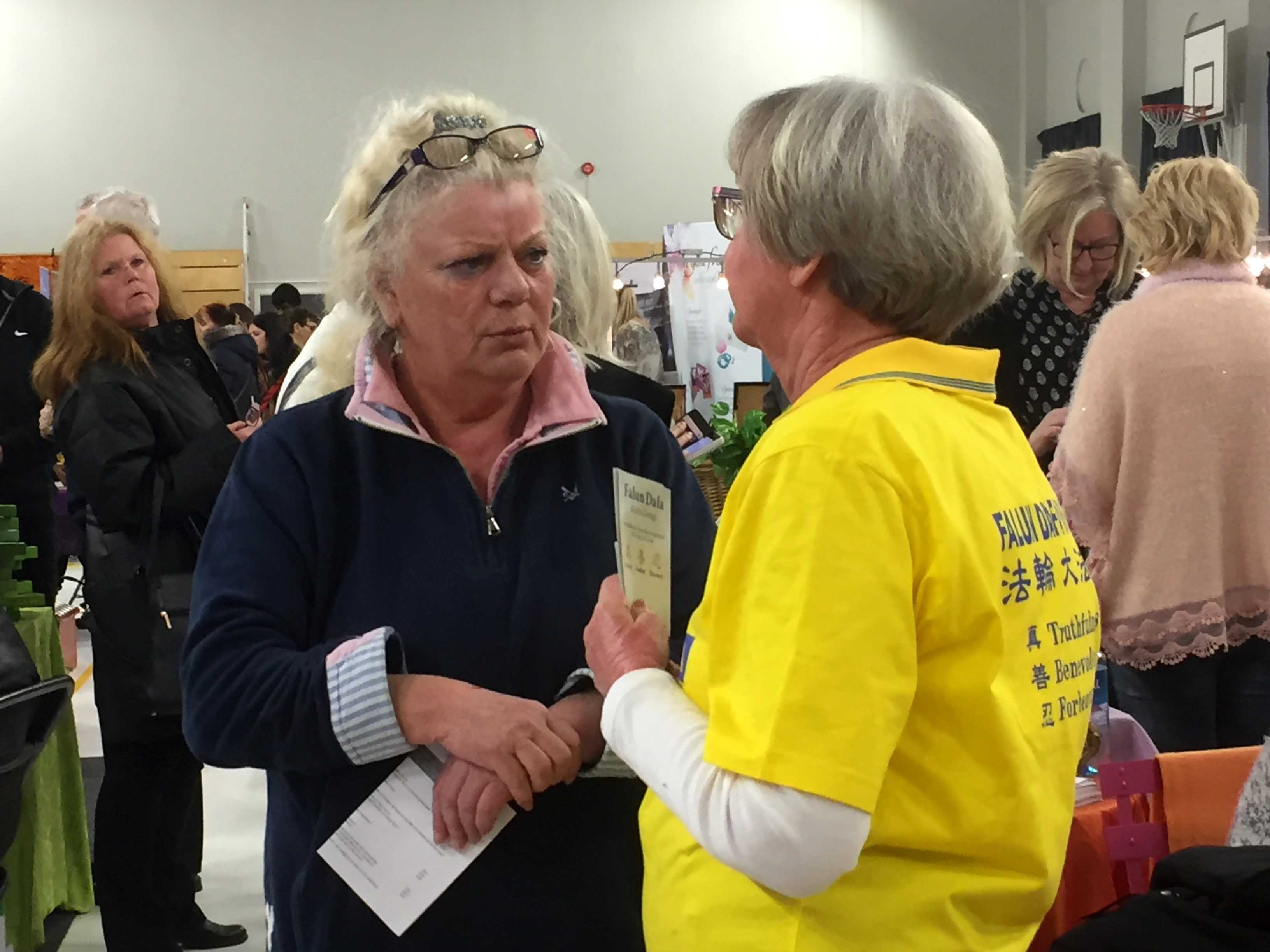 还有一位从Uppsala城市来的参观者,他看到学员在打坐时就说:“我看到你们在这里,觉得比以前的展览会好很多,现在越来越多的人来关心自己的健康了,不能再吃那些药片了。这次展览会不同了,很明亮。我感觉神离我们越来越近了。”