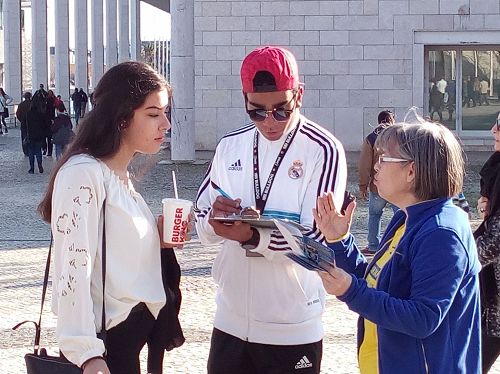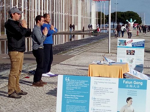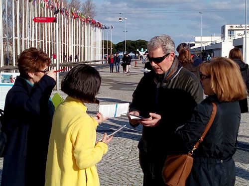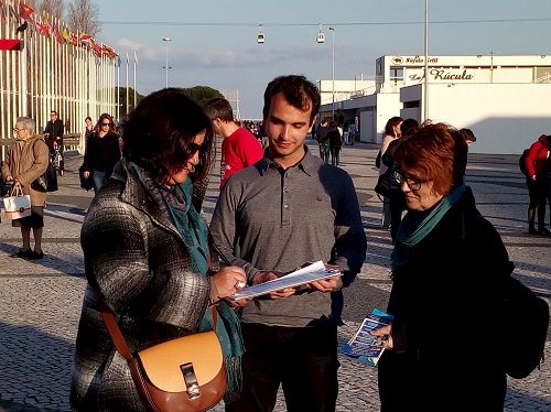 当天活动在位于里斯本著名旅游景点——九八年世博会葡萄牙馆(portuguese Pavillon Expo 98)广场举行,旁边也是里斯本大型的购物中心。法轮功学员的活动吸引了众多游人和前来购物的民众了解真相,并在征签表上签名。