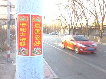 北京路边的真相海报和条幅;湖南省怀化市靖州县过年期间的真相粘贴和海报;新年期间山东烟台的真相条幅