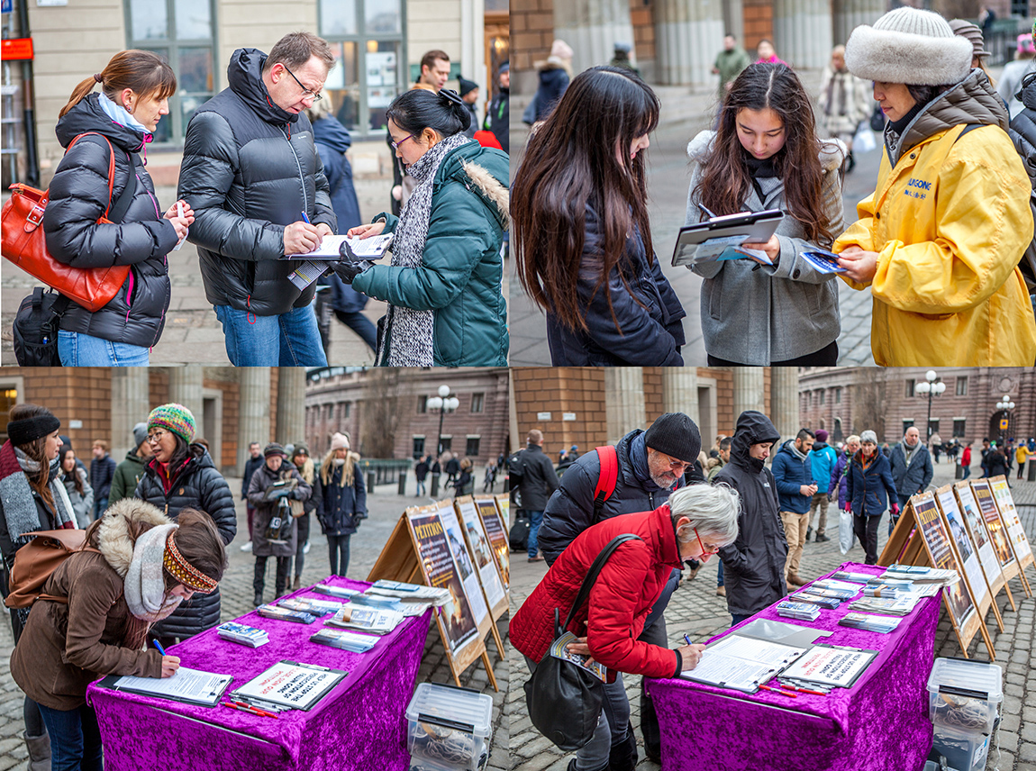 ![]() 在斯德哥尔摩最热闹的皇宫旁的钱币广场(Mynttorget)上,民众观看真相展板,了解真相。 |