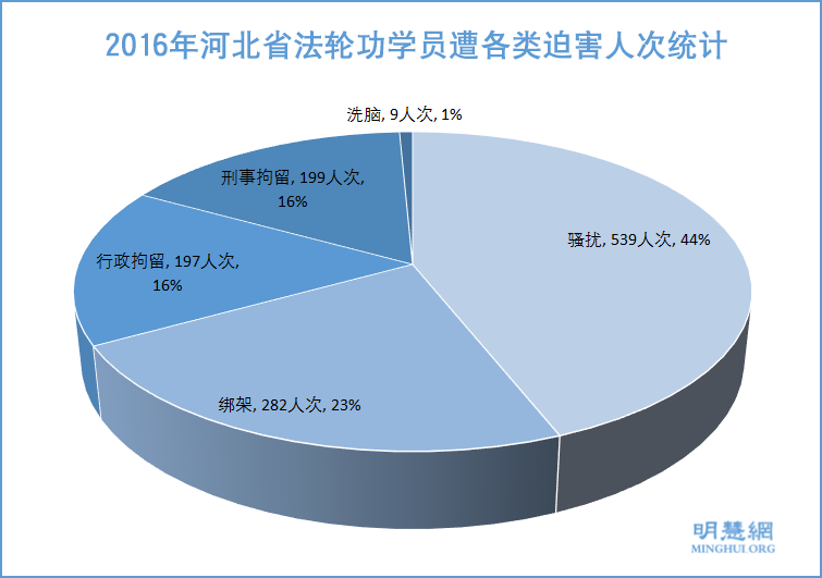 ![]() 图1:2016年河北省法轮功学员遭各类迫害人次统计 |