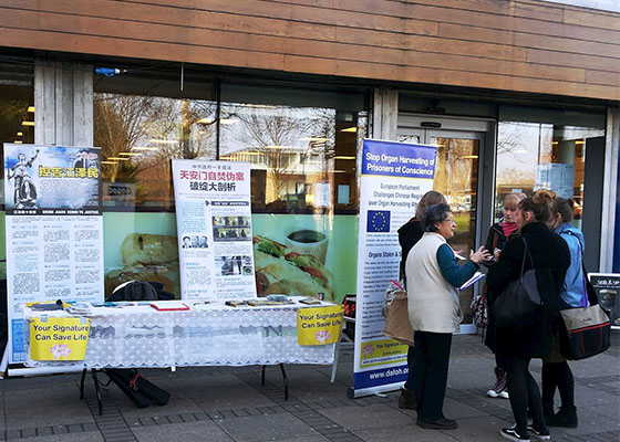 二月七日和十五日,英国法轮功学员在苏格兰邓迪大学揭露中共迫害法轮功、活摘法轮功学员人体器官的暴行。