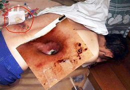 ![]() 郝迎强 | ![]() 郝迎强被迫害的肝腹水晚期 | ![]() 腰伤感染、溃烂出一个大坑 |