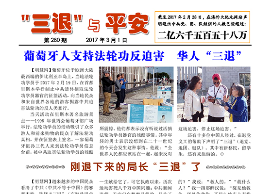 葡萄牙人支持法轮功反迫害 华人“三退”