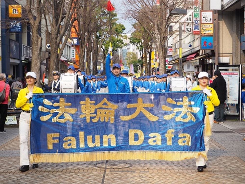 ![]() 图1:三月十九日,来自日本各地的法轮功学员齐聚横滨举行了游行活动,图为游行队伍经过横滨中心部的关内的场景 |