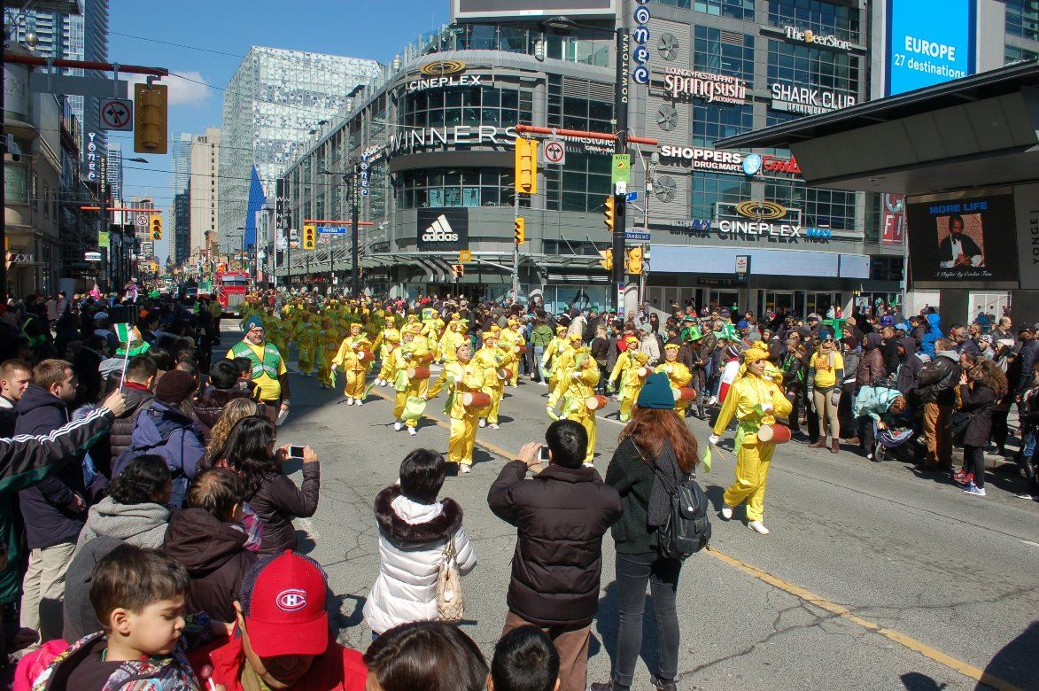 ![]() 图1:第三十届圣派翠克节大游行中的法轮大法代表队中的天国乐团 |