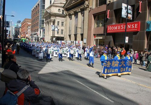 ![]() 图1:第三十届圣派翠克节大游行中的法轮大法代表队中的天国乐团 |
