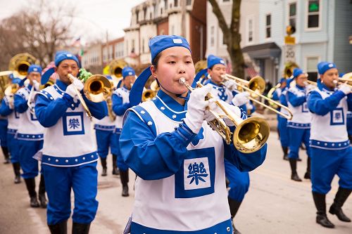 天国乐团自二零零八年起多次受邀参加波士顿圣派翠克日游行,法轮功学员的风范给主办方留下了深刻的印象。尤其是在二零一零年的圣派翠克日游行,遇上大雨滂沱, 许多参加游行的团体临时取消参与游行或提早结束,而法轮功学员却不为恶劣天气所动,从头走到尾,一丝不苟,令主办方极为感动。二零一一年的圣派翠克日游行上,主办方特别安排法轮功团体——天国乐团紧跟领队的波士顿警察队,走在游行队伍的前端。