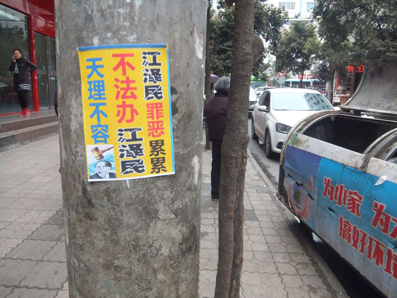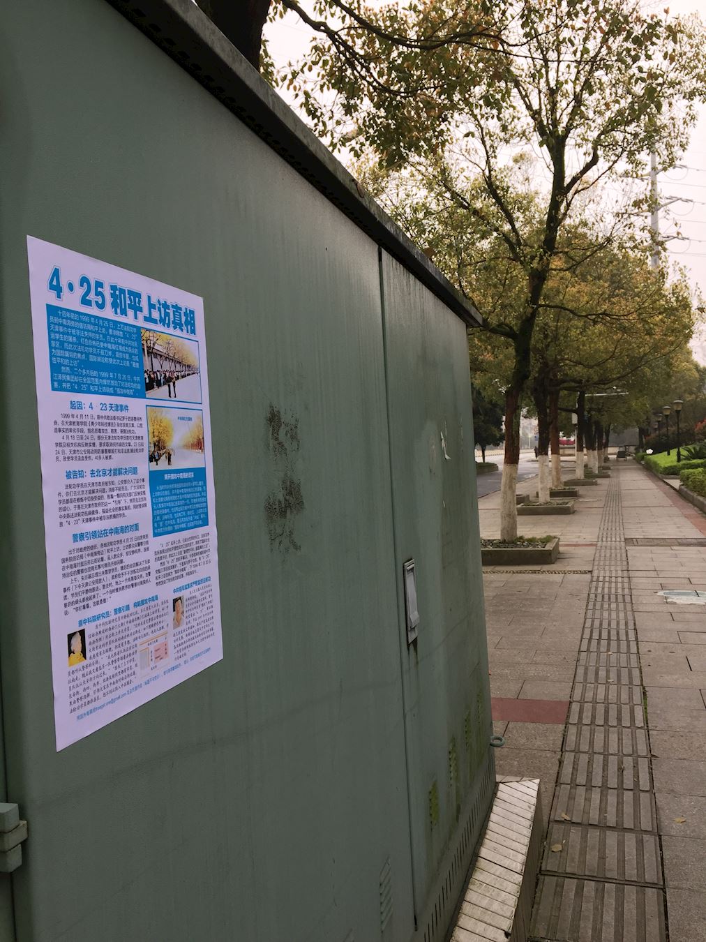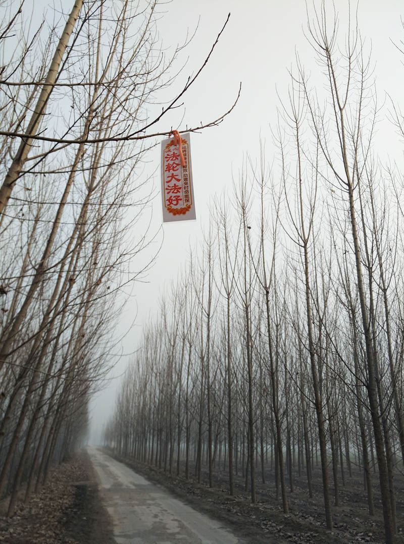 条幅树挂传递真善忍的信息