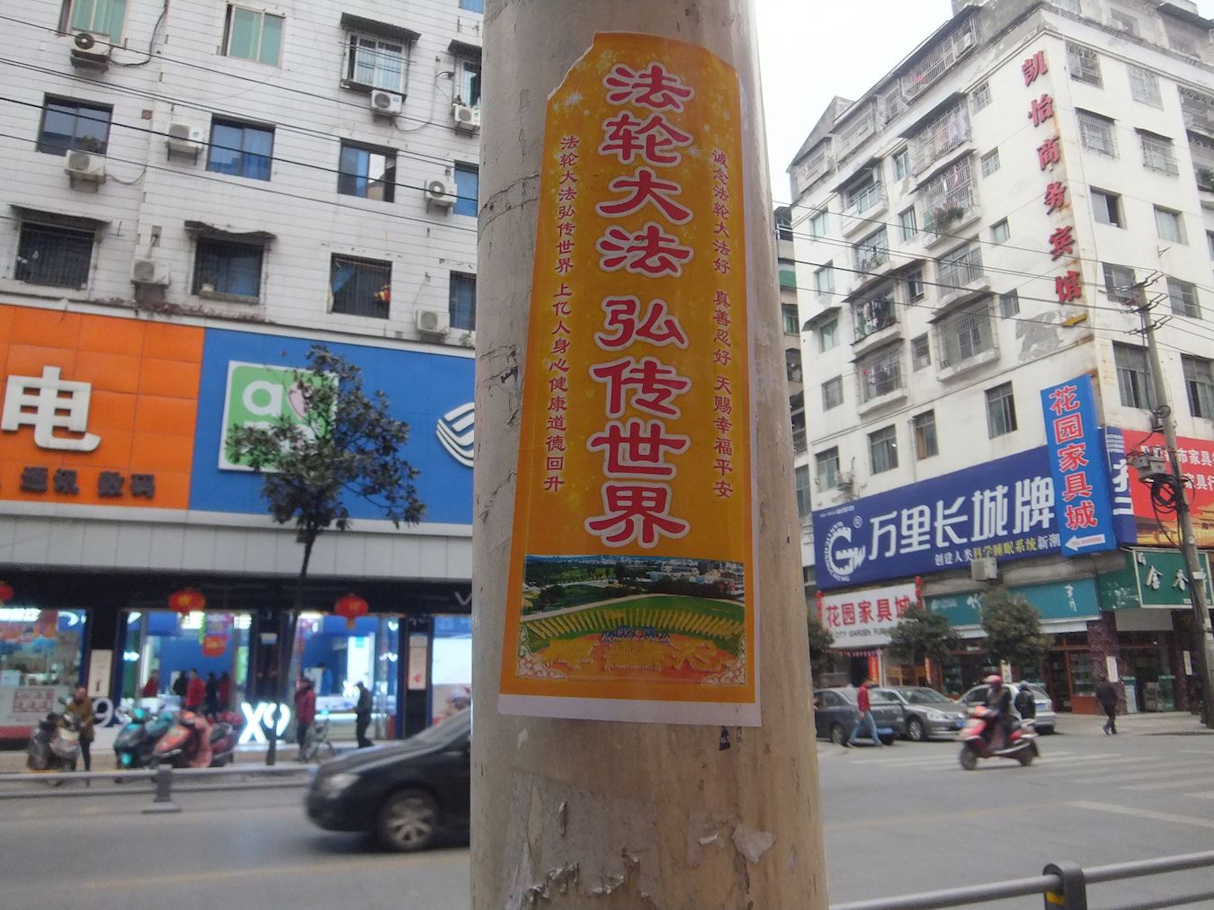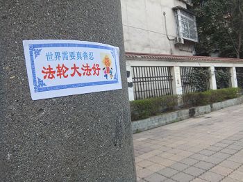 大陆多地街头展板、标语传递“法轮大法好”(图)