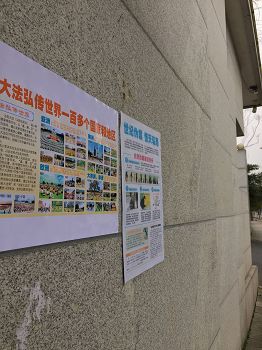 大陆多地街头展板、标语传递法轮功真相