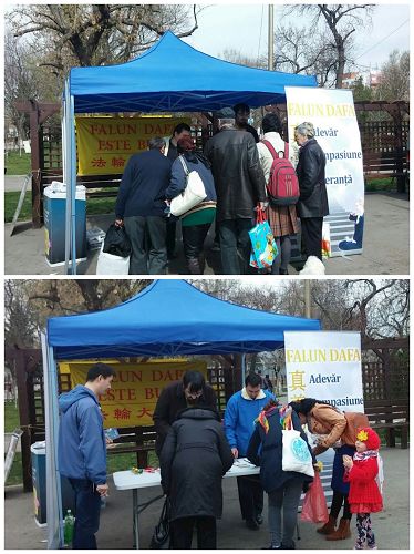 '图2~3:罗马尼亚淳朴小城Alexandria的民众关注法轮功,签名支持反迫害'