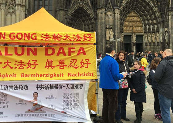 三月六日,法轮大法学员在科隆大教堂前举办了法轮大法信息日。各国民众了解真相后,纷纷表示支持法轮功学员。