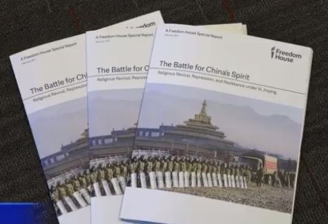 '图:“自由之家”2017年2月28日发布题为“中国的精神之战”的最新报告。'