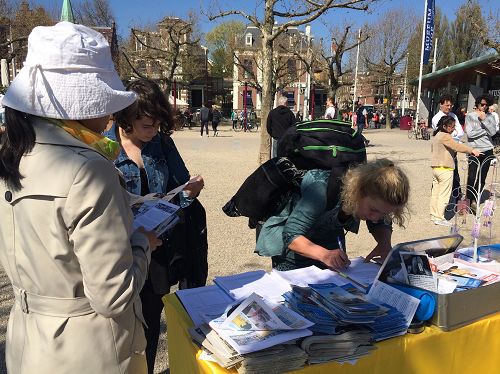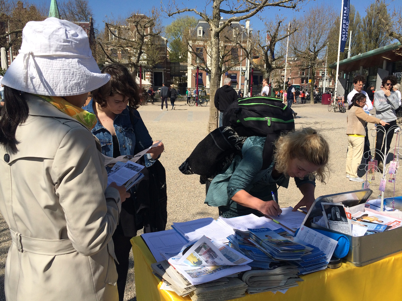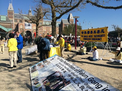 【明慧网二零一七年四月十一日】荷兰国立博物馆位于荷兰首都阿姆斯特丹市中心,每天都有大量的世界各地的游客来到博物馆参观。二零一七年四月八日和九日,荷兰部分法轮功学员在博物馆前的广场上举行了弘扬法轮大法、讲清迫害真相及揭露中共活摘器官的活动。