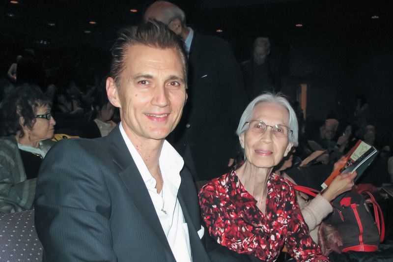 图5:好莱坞资深音乐家詹姆斯·内维德(James Intveld)携八十岁的母亲观看神韵在洛杉矶地区千橡市弗雷德·卡维礼剧院(Fred Kavli Theatre)的演出