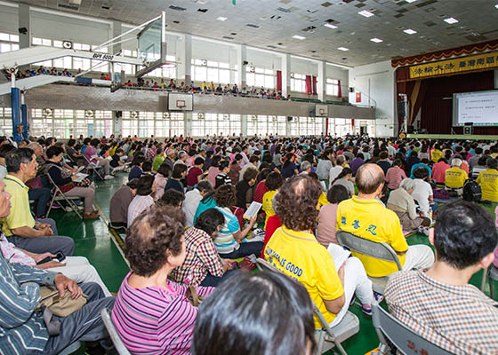 四月十六日,来自台湾南区一千多名法轮功学员,在屏东万丹国中举办台湾南区春季一日学法交流会,互勉精進。