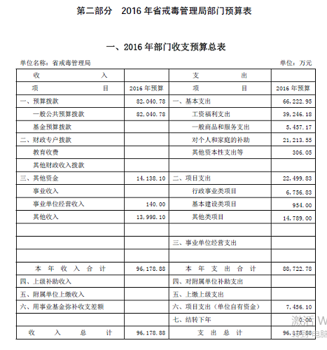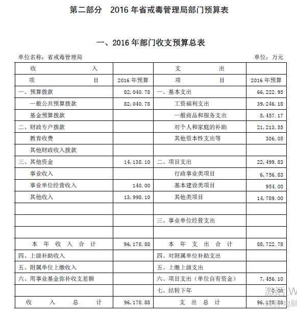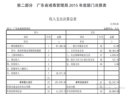 三水洗脑班原来编制上隶属省劳动教养工作管理局,二零一三年全国劳教所解体,广东省三水劳教所同时解体,三水洗脑班因此隶属广东省戒毒管理局。二零一五年,广东省戒毒管理局财政拨款9.7亿,由13个戒毒部门接收拨款,其中包括“广东省法制教育所”,均摊每个部门接收7000万元的财政拨款。(详见附件二 《2015省戒毒管理局部门决算》 ),二零一六年广东省戒毒管理局财政支出9.6亿元。(详见附件三《广东戒毒管理局2016年部门预算公开》 )