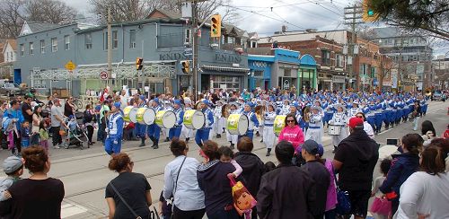 图3~4:第五十二届多伦多湖滨复活节大游行中行进中的法轮大法天国乐团