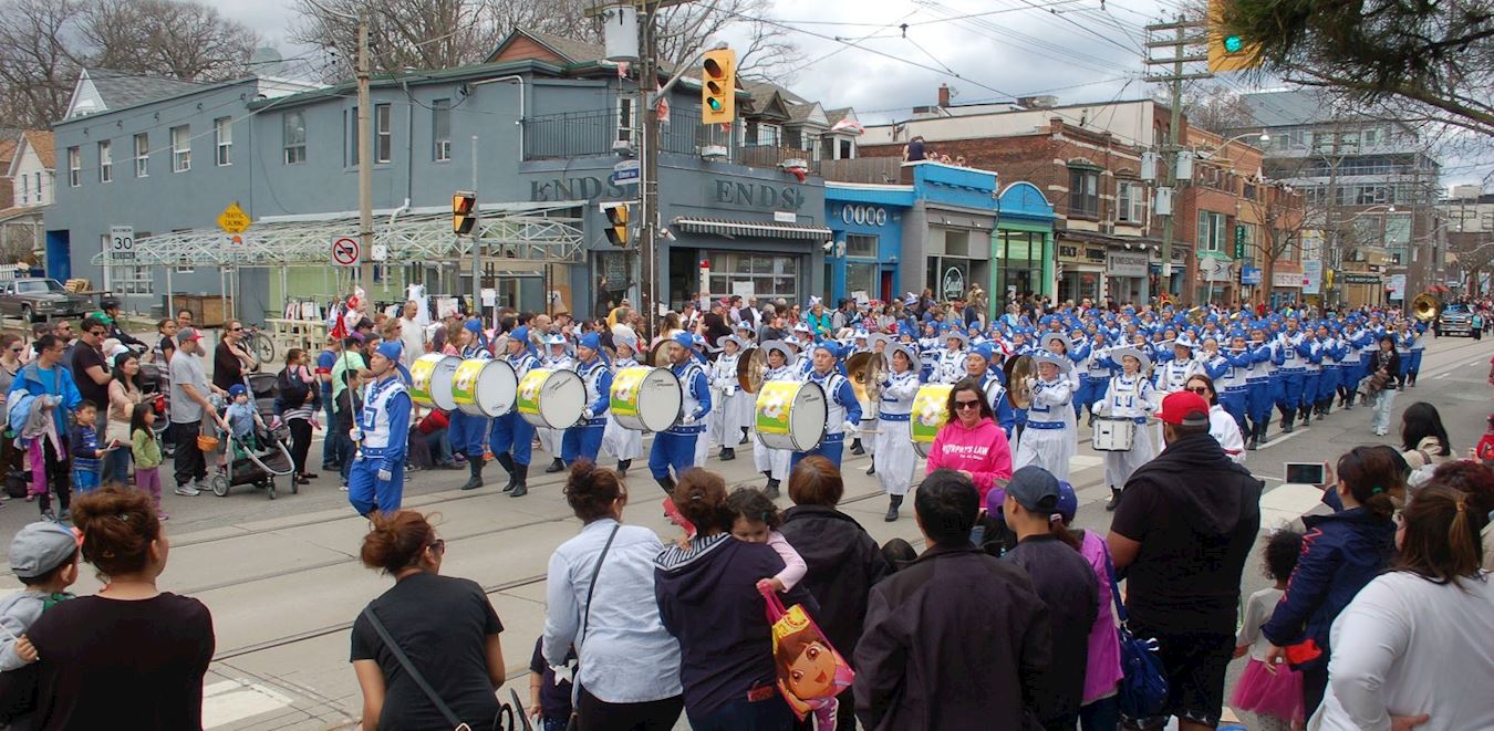【明慧网二零一七年四月十八日】二零一七年四月十六日,由加拿大多伦多腰鼓队和天国乐团组成的法轮大法代表队应邀参加了第五十二届多伦多湖滨复活节大游行(Toronto Beaches Easter Parade)。游行路线起始于安大略湖滨(Lake Ontario)的芒罗公园(Munro Park),沿着女王街西行,最后结束于活拜大道(Woodbine Avenue),历时约两个小时。