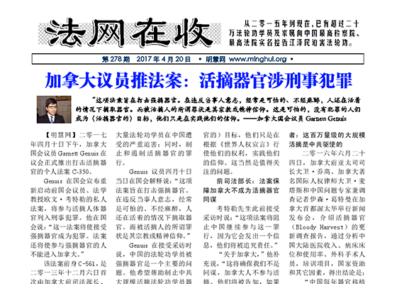 加拿大议员推法案:活摘器官涉刑事犯罪