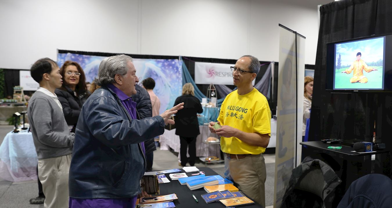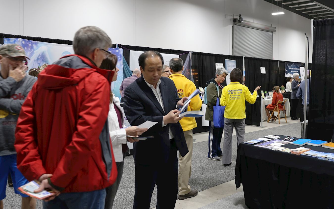 图1:四月二十二日到二十三日,法轮功学员参加了加拿大首都渥太华EY中心(EY Center)举办的身心健康展览。