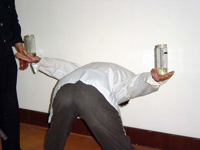 酷刑演示:背铐(“背宝剑”)