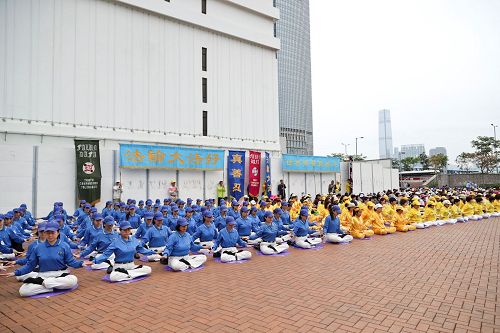 ![]() 图1:香港法轮功学员四月二十三日在北角英皇道游乐场举行集会,纪念四二五和平上访十八周年。 |
