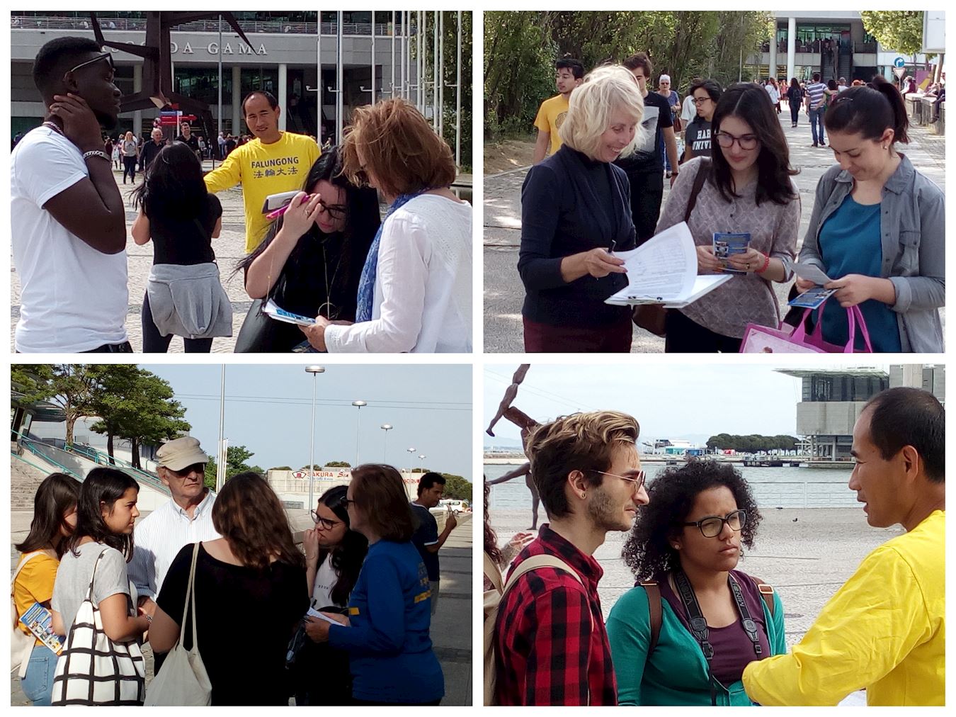 【明慧网二零一七年四月二十六日】为了纪念四·二五和平上访十八周年,二零一七年四月二十二日、二十三日和二十五日,葡萄牙里斯本的法轮功学员在里斯本世博会举行讲真相活动,揭露中共活体摘取法轮功学员器官罪行,同时呼吁帮助制止中共迫害法轮功。