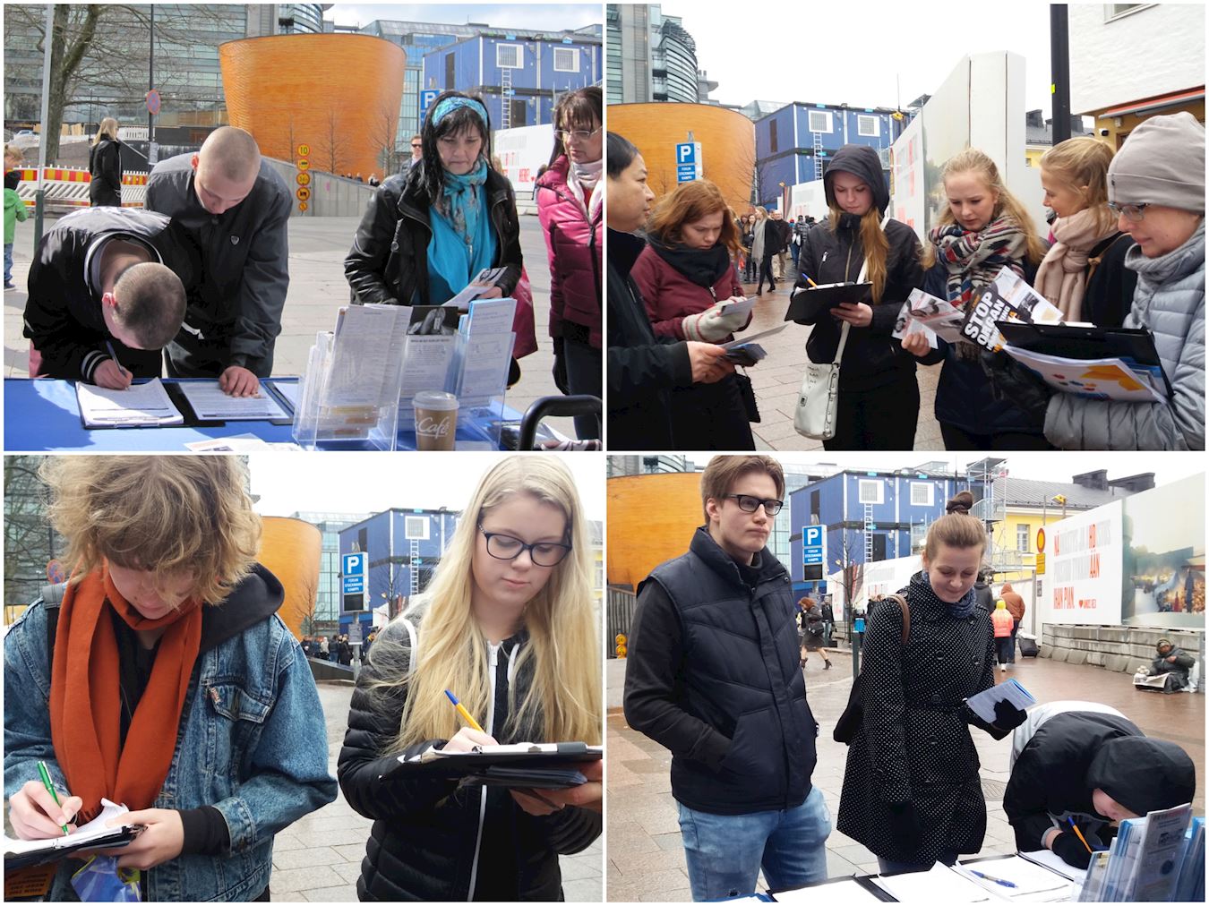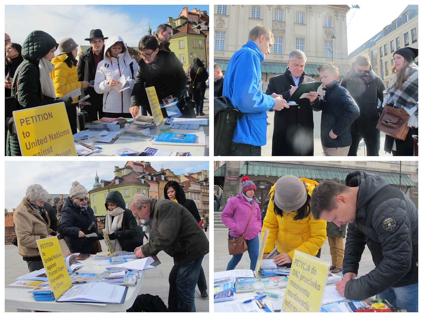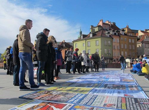 当天,学员们在广场上拉起横幅,摆出真相展板及信息台,向络绎不绝的行人讲真相,揭露中共邪党迫害法轮功的罪行。很多人在征签簿上签名,支持法轮功学员反迫害。