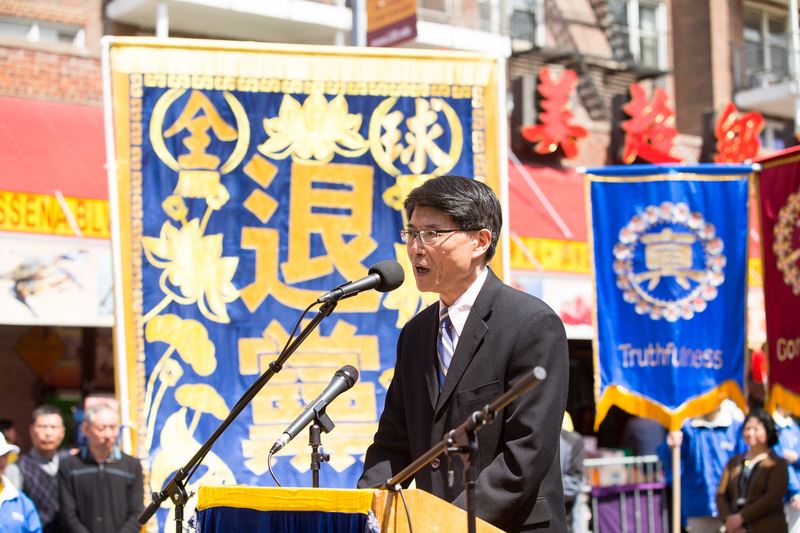 集会上,法轮大法信息中心、全球退党服务中心、追查迫害法轮功国际组织的负责人,以及时政评论家、社会团体负责人、被迫害的法轮功学员等发表演讲,并有七名民众在集会现场公开宣布退出中共党团队。