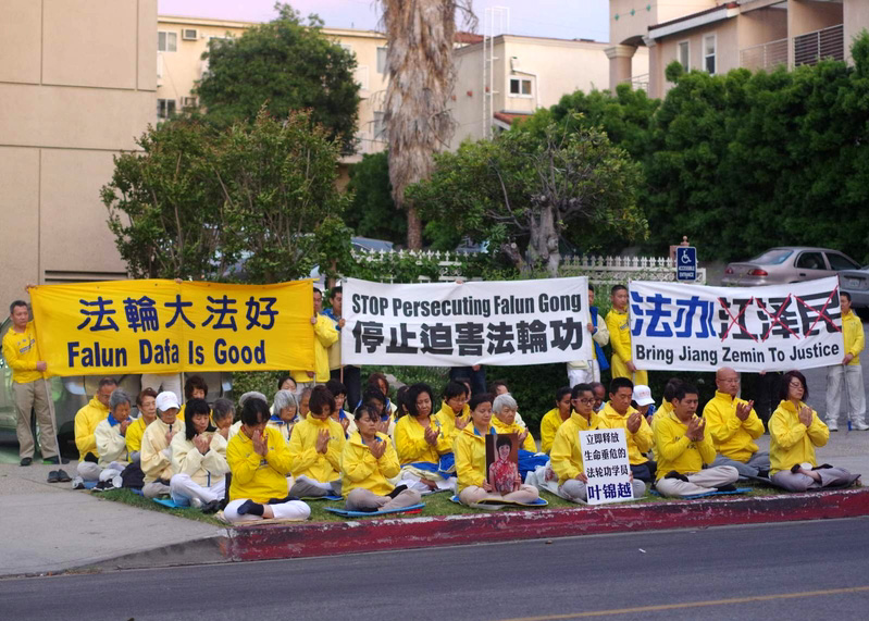 ![]() 图1-4:4月25日洛杉矶部分法轮功学员在中领馆前纪念1999年“4‧25”万人和平上访,呼吁法办江泽民、停止迫害法轮功 |