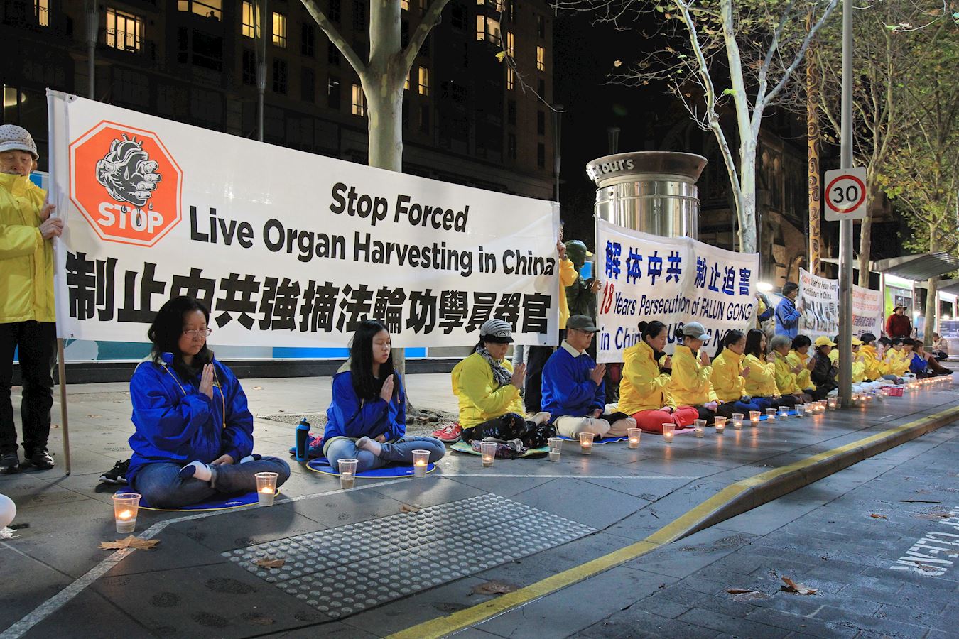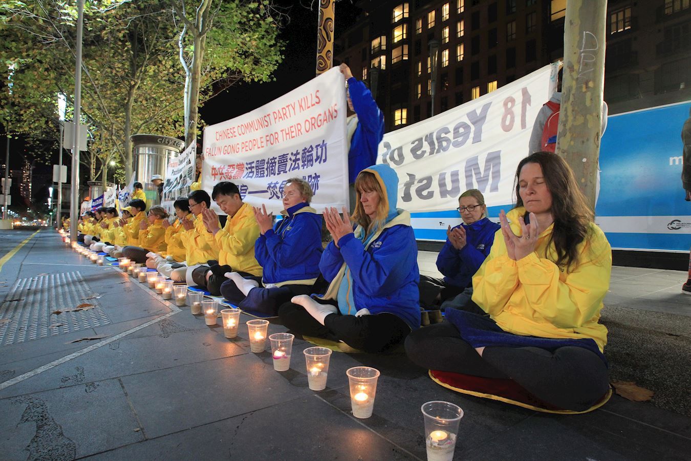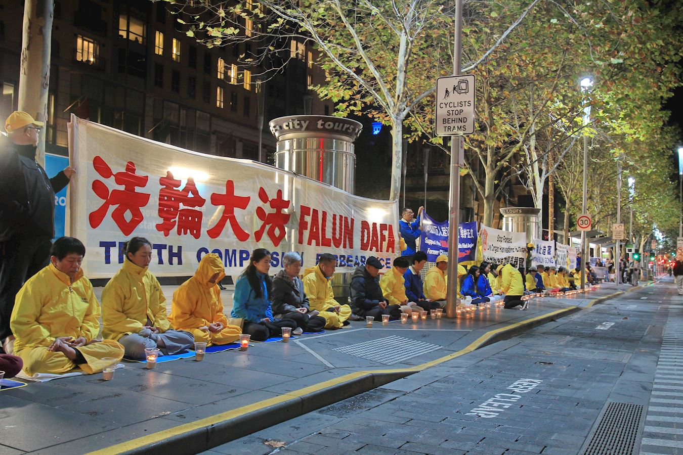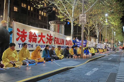 ![]() 图3~5:二零一七年四月二十五日晚,墨尔本法轮功学员在市中心城市广场举行烛光夜悼。 |