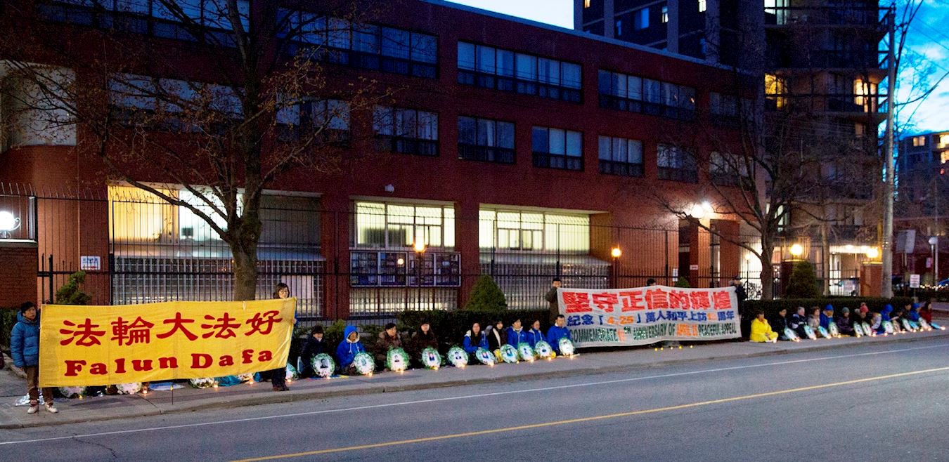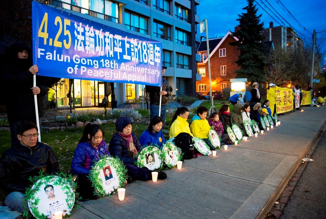二零一七年的同一个日子,为纪念这一壮举,并向媒体和主流民众讲清法轮功真相,多伦多法轮功学员举行了系列的纪念活动:中午一点至两点,在中领馆前召开新闻发布会,纪念四二五和平请愿壮举,并揭露中共谎言和迫害;下午三点半至六点,在市中心的St George 和 Bloor,法轮功学员拉起横幅,筑起真相勇气长城,向民众讲真相;晚上八点至十点在中领馆前举行烛光悼念,缅怀十八年来因为修炼法轮功而在中国受迫害致死的法轮功学员。现场的肃穆和祥和,令民众震撼,警察赞赏,华人“三退”。当地华人媒体新时代电视(Fairchild TV)做了详细的采访。