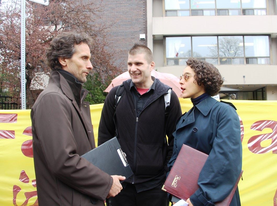 在活动现场冒雨执勤的一队警察对法轮功学员的活动非常赞赏,一位警察说:“我知道你们今天的活动是为了纪念四二五事件,你们每年都来这里,我支持你们!”第二位警察说:“很高兴看到你们能够走出来到这里请愿,让更多的人知道发生在中国的中共对法轮功学员的迫害。”第三位警察说:“我们来这里是来保护你们的。”