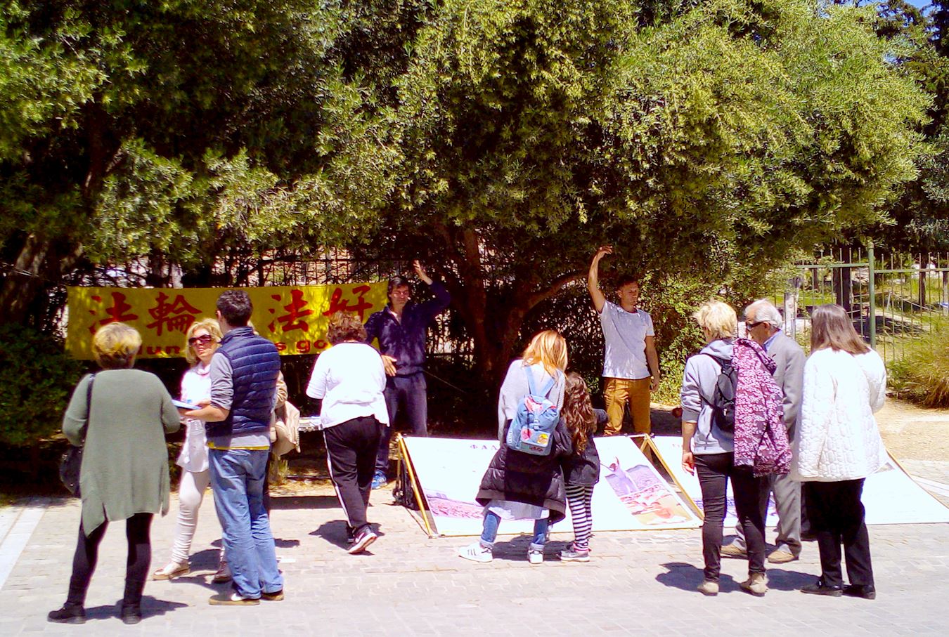 【明慧网二零一七年四月二十七日】二零一七年四月二十三日,希腊首都雅典法轮功学员来到著名旅游景点Acropolis 举办活动,纪念十八年前万名法轮功学员为争取合法宽松的修炼环境而在北京的和平大上访。