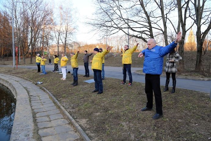 ![]() 图1~6:部份俄罗斯法轮功学员聚集在莫斯科中领馆前集体炼功 |