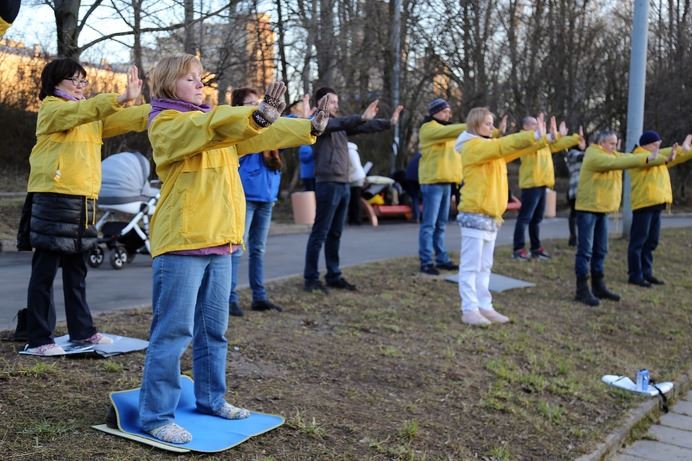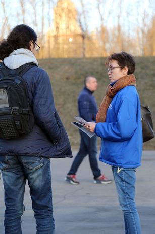 几位就读于莫斯科大学的年轻人看到后,了解了这场迫害的真相和中共对法轮功学员活摘器官的罪行后,联想到了苏共政权的牺牲者们,说到:“共产党的本质就是邪恶的。”临走时感谢学员们对他们讲述真相。