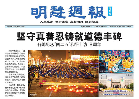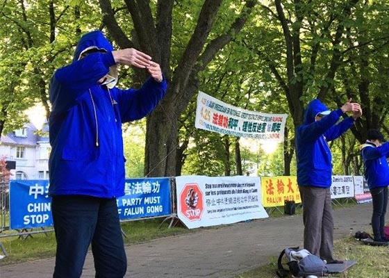 四月二十六日,比利时法轮功学员在中领馆前举行活动,纪念四二五和平上访十八周年,并谴责中共对法轮功的迫害,要求法办迫害元凶江泽民。