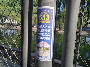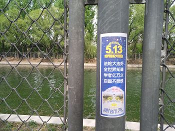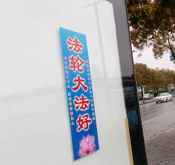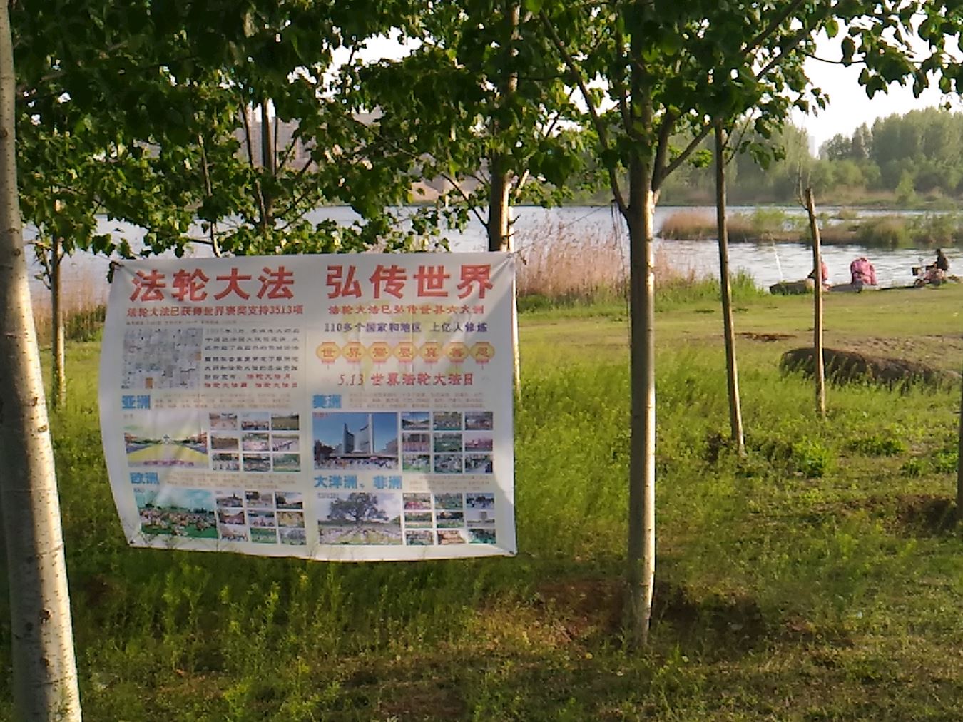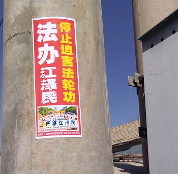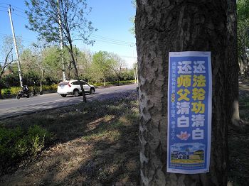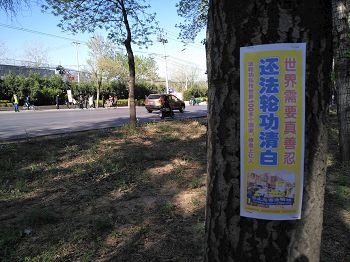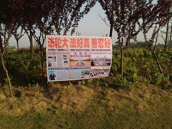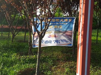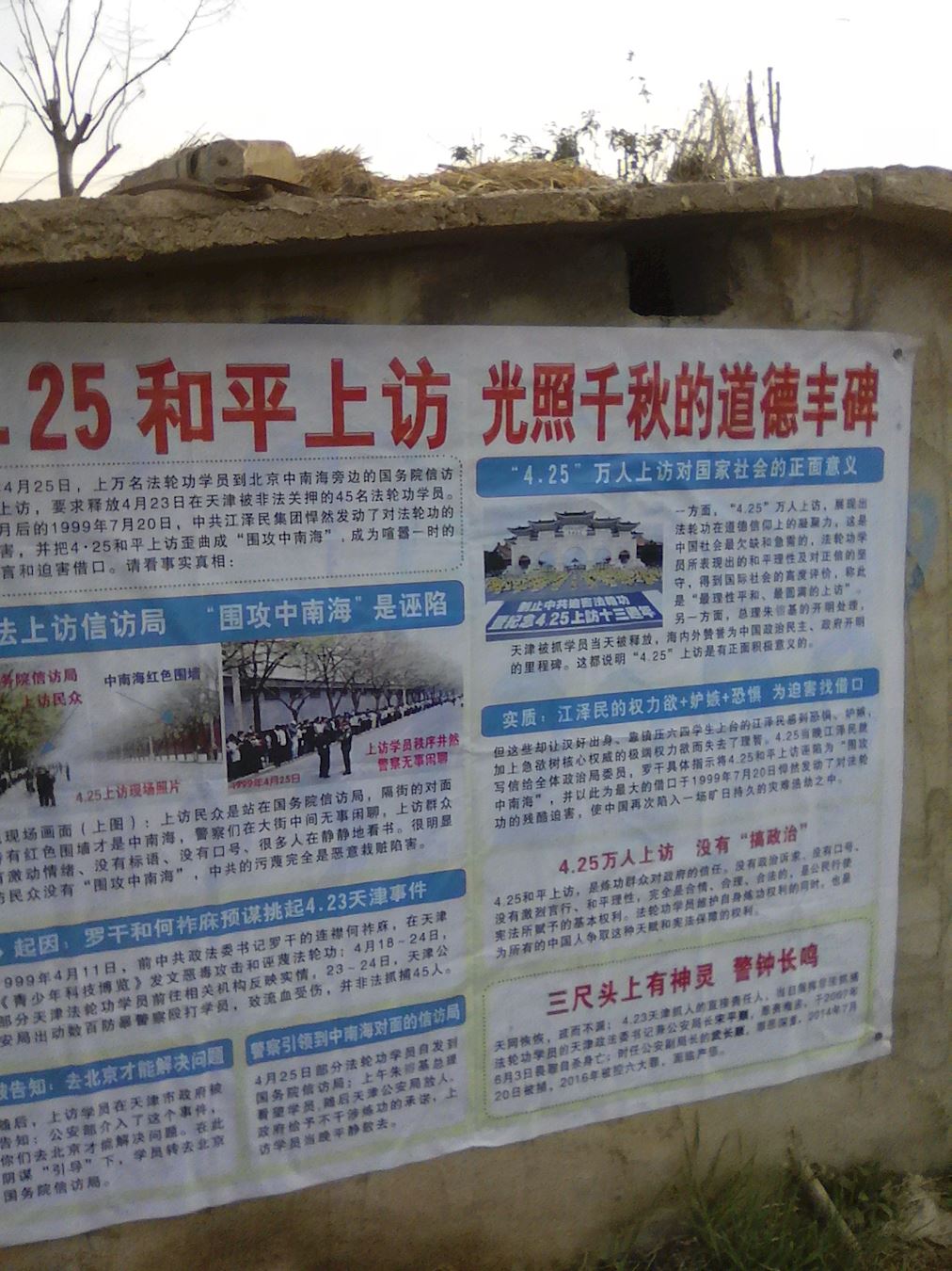 纪念“4.25”山东省日照市一县城再现真相展板、粘贴