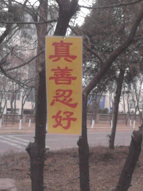 法轮大法好真善忍好条幅福泽辽西大地-葫芦岛