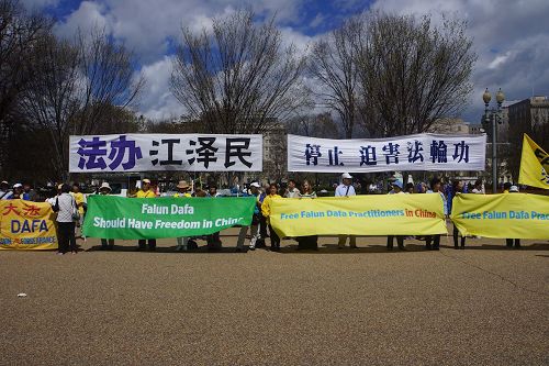 川习会前 法轮功学员白宫前呼吁法办江泽民(图)