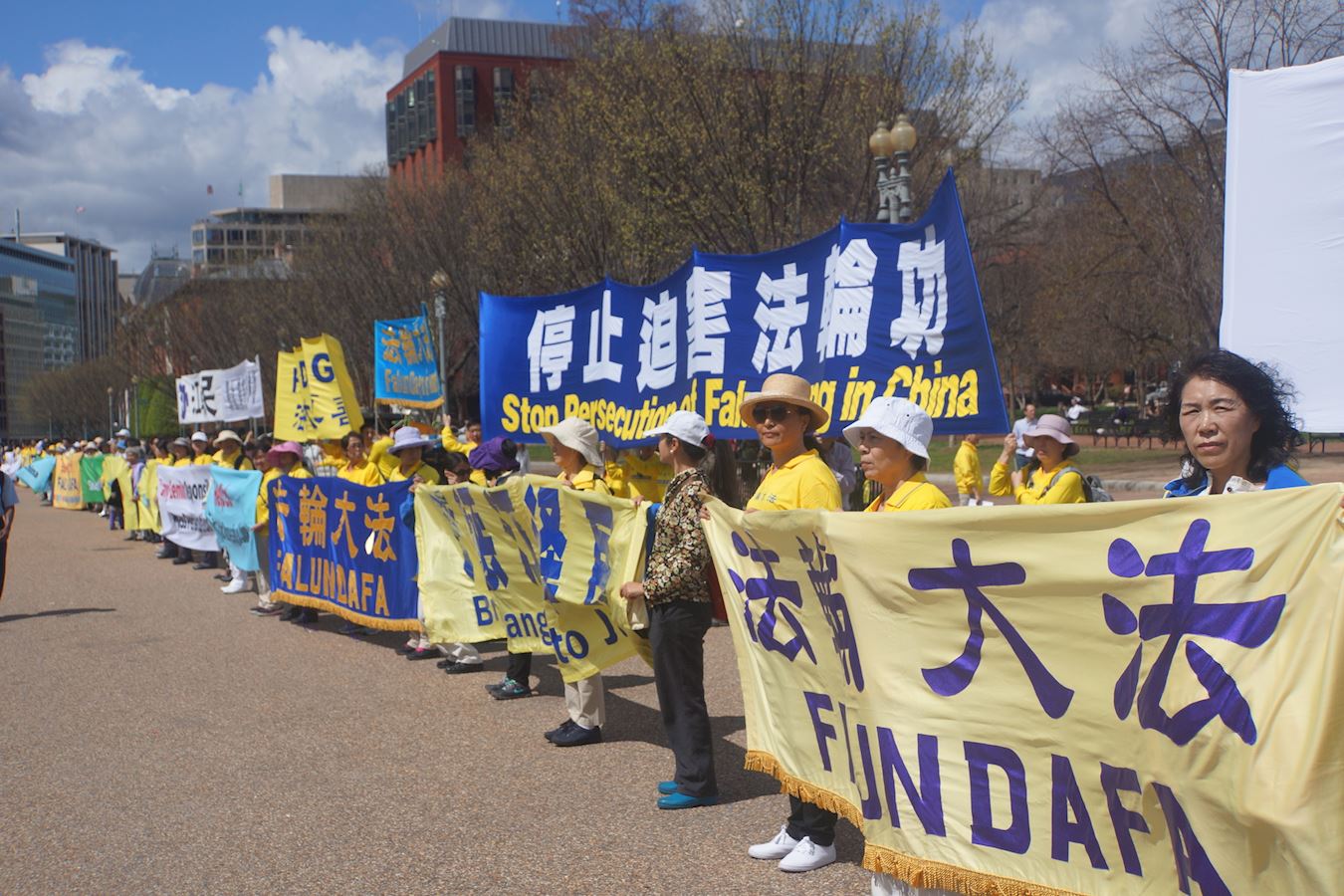 '图1~6:来自华盛顿特区、纽约等地的部份法轮功学员在白宫前集会,呼吁结束中共政权对法轮功学员长达十八年的迫害'