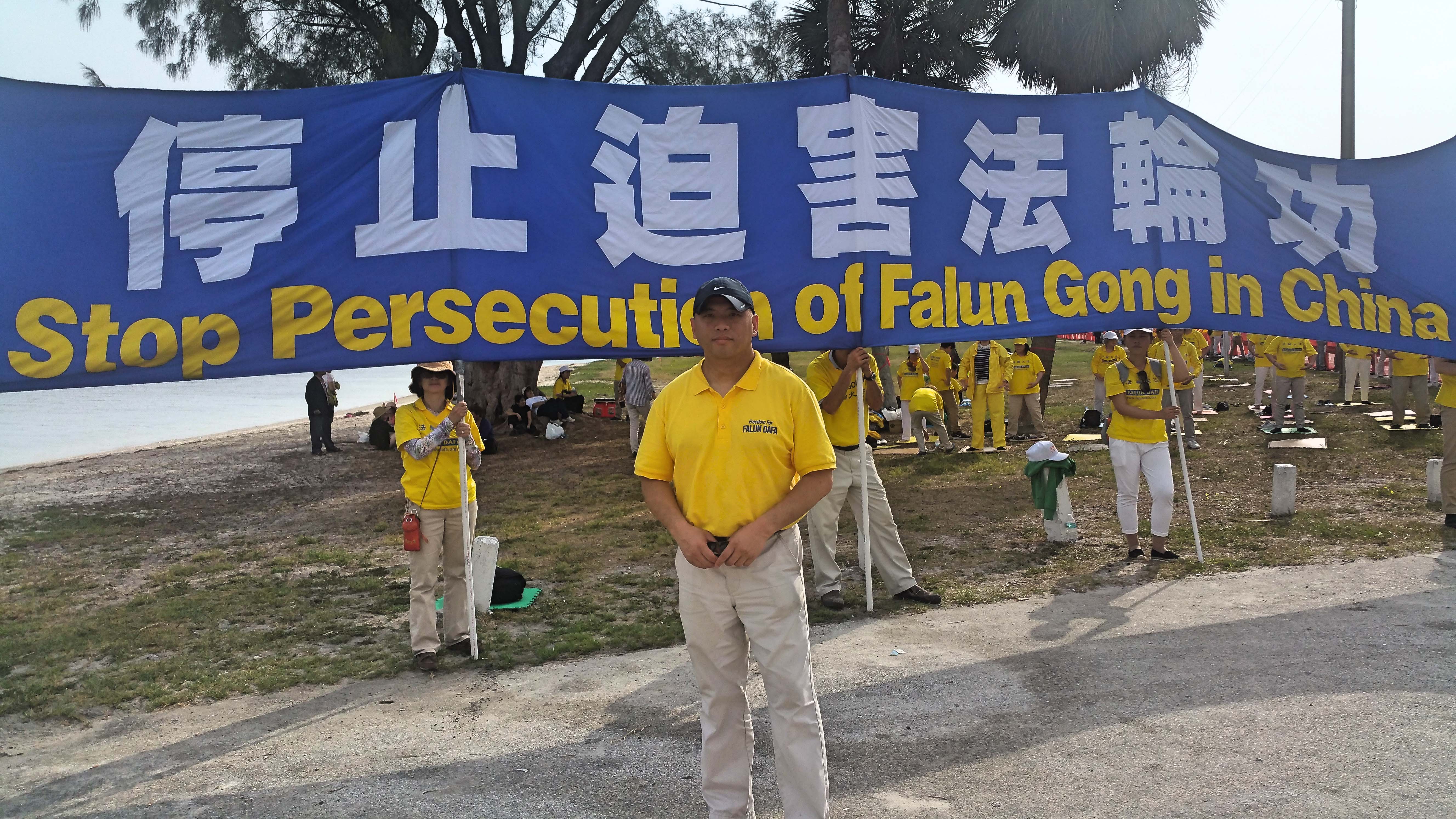 来自坦帕的法轮功学员苑青特地前来参加和平抗议,为她的母亲邓翠萍请愿。邓翠萍在今年二月份遭非法判刑六年,目前已经被非法关押在看守所八个月,因遭迫害,身体健康状况在恶化,左腿淋巴长一肿块。看守所试图欺骗家属,说没有病,不让家属去见。女儿苑青呼吁各界民众应关注此事,并希望习近平释放她的母亲及其他被非法关押的法轮功学员。