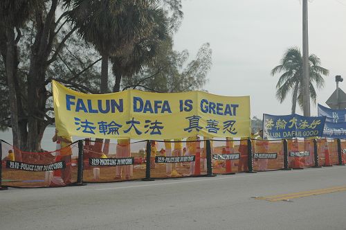 当天,法轮功学员在习近平入住的旅馆外,川普的马拉戈庄园,及沿途和平请愿,有的演示法轮功功法,有的打出“法轮大法 真善忍”,“法轮大法好”,“停止迫害法轮功”,“法办迫害元凶江泽民”等横幅,习近平的车队从法轮功学员的横幅前经过,习近平本人清楚的看到了“法轮大法好”,“世界需要真善忍”和“法办江泽民”的横幅。