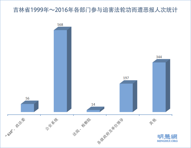 ![]() 图2:吉林省1999年~2016年各部门参与迫害法轮功而遭恶报人次统计 |