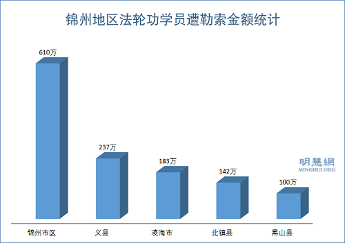 中共迫害法轮功十七年多来,锦州地区法轮功学员:被迫害致死163人;非法判刑158人次;非法劳教694人次……过程中中共人员还疯狂敛财。