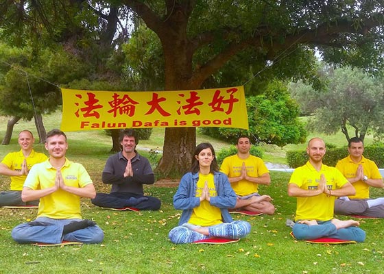 庆祝世界法轮大法日 希腊学员景点传播真相(图)